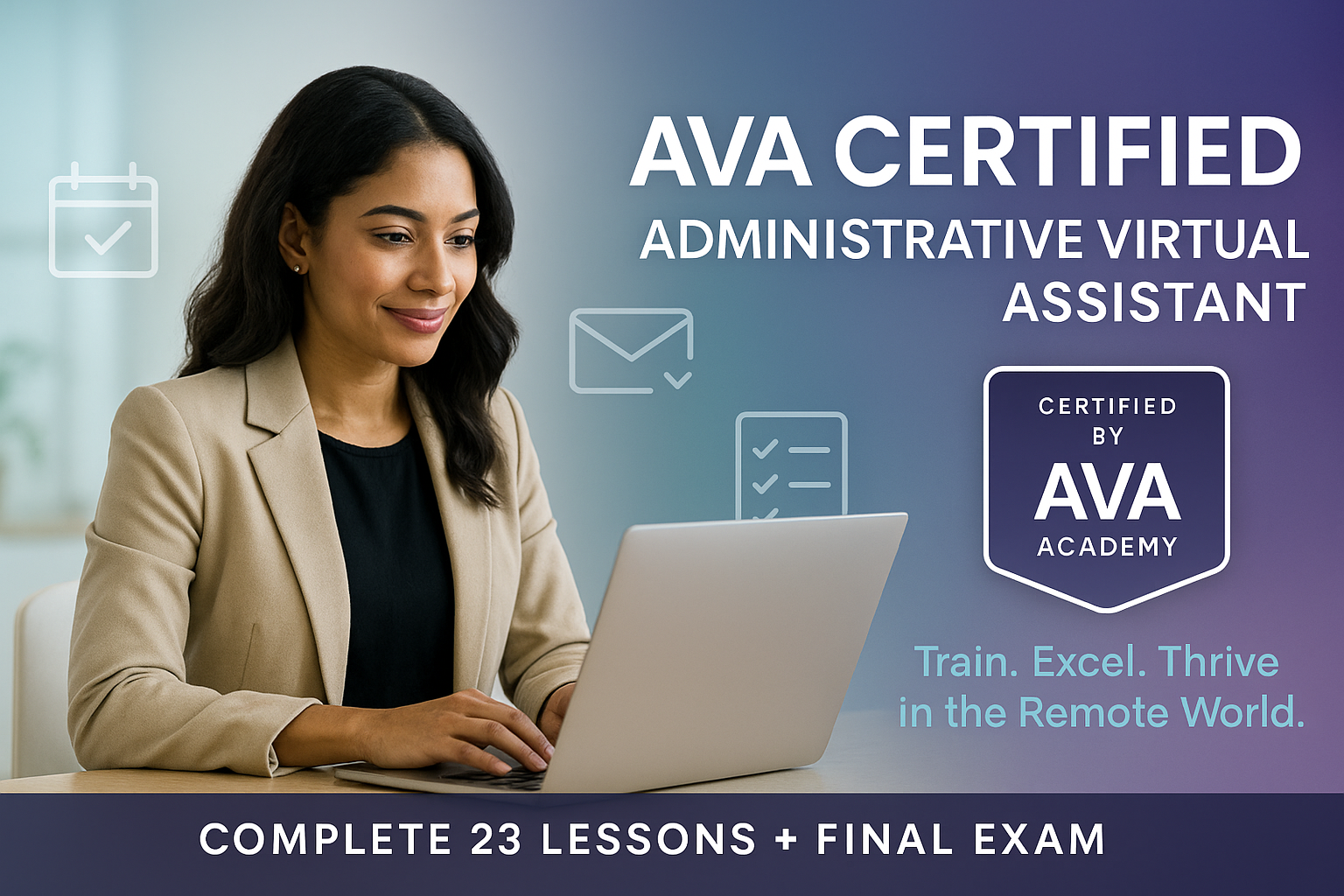 AVA Certified: Administrative Virtual Assistant ProgramMaster the skills to become a high-performing Administrative Virtual Assistant. This hands-on certification program takes you from foundational remote work setup to mastering executive support,...
